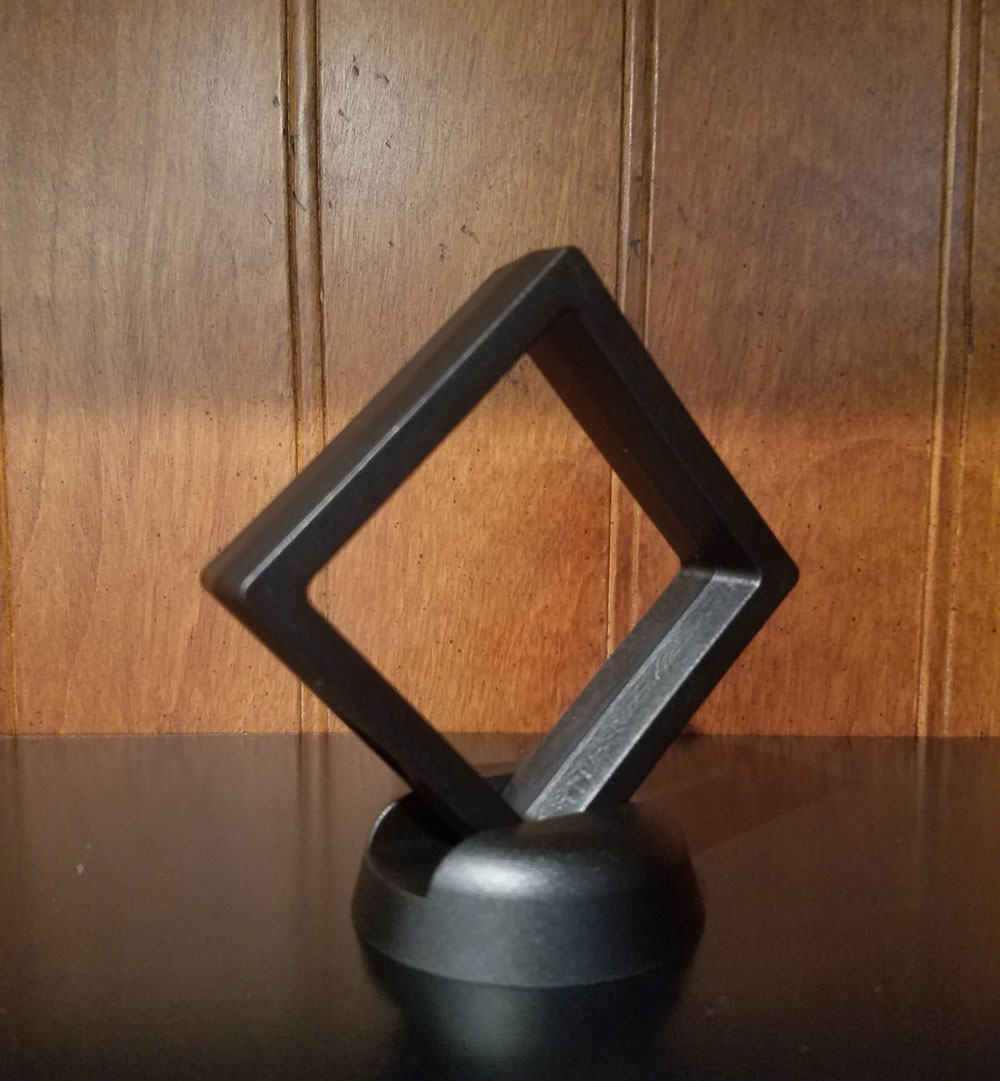 Floating Plastic Display Case Holder with Stand. Floating Display Case Holder Challenge Coin display area measures 2 3/16” X 2 3/16”. Perfect to display GAC Challenge Coin for viewing.